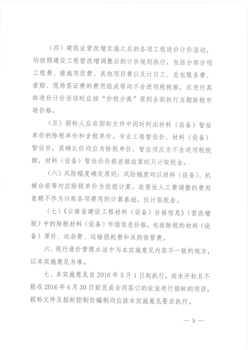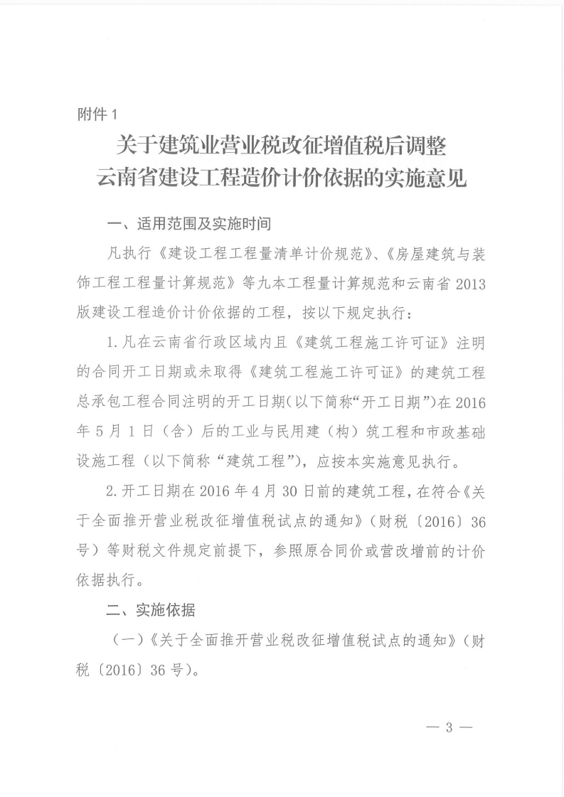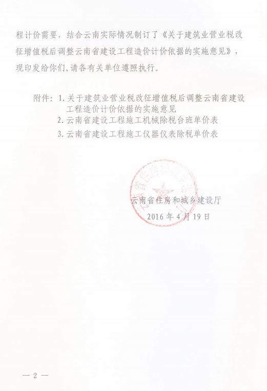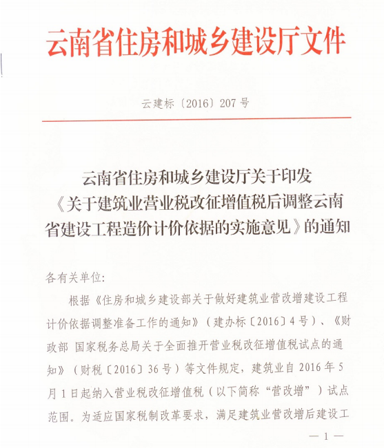 關(guān)于建筑業(yè)營業(yè)稅改征增值稅后調(diào)整云南省建設(shè)工程造價計價依據(jù)的實施意見的通知 云建標(biāo)[2016]207號