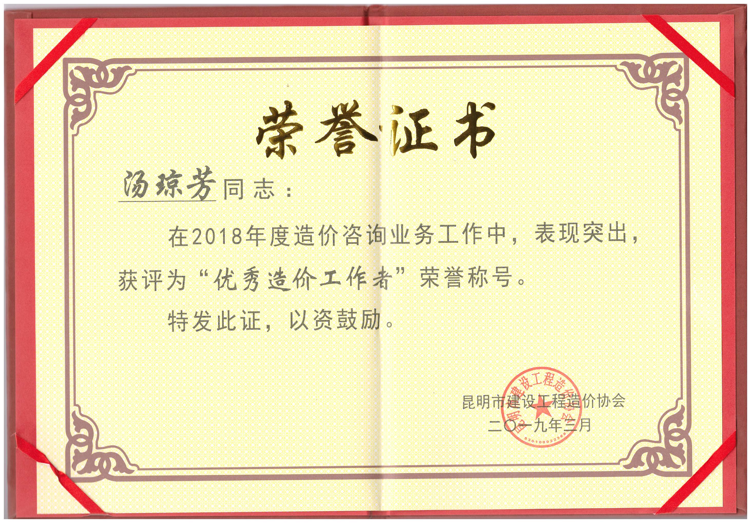 祝賀寧李云、湯瓊芳同志榮獲2018年度“優(yōu)秀造價工作者”