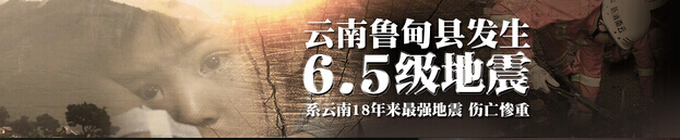 8月3日16時30分,云南省昭通市魯?shù)榭h發(fā)生6.5級地震,震源深度12公里。地震給魯?shù)榭h、巧家縣人民群眾生命財產(chǎn)造成重大損失。系云南18年來最強地震,傷亡慘重。據(jù)云南省民政廳公布數(shù)據(jù),截至昨天(災(zāi)后72小時):2014年8月6號10點30分,地震造成昭通市魯?shù)榭h、巧家縣、昭陽區(qū)、永善縣和曲靖市會澤縣108.84萬人受災(zāi),589人死亡,而前晚(災(zāi)后48小時)這個數(shù)字還是410人。災(zāi)情牽動著每一位中國人的心。