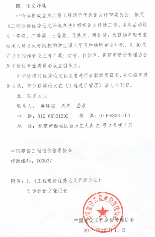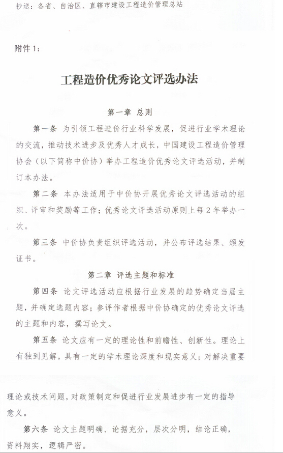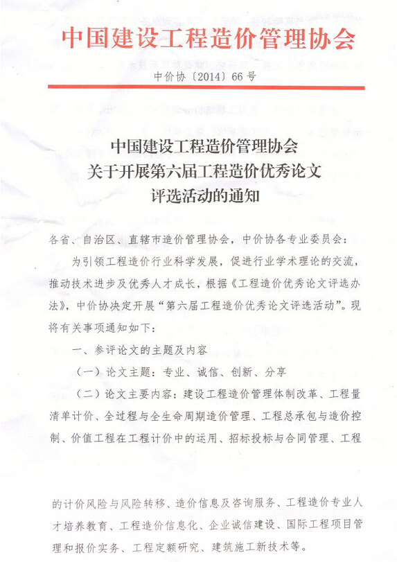 中國建設(shè)工程造價(jià)管理協(xié)會(huì)關(guān)于開展第六屆工程造價(jià)優(yōu)秀論文評(píng)選活動(dòng)的通知