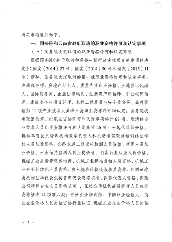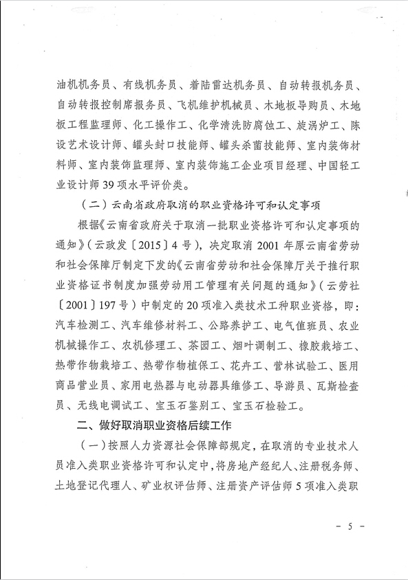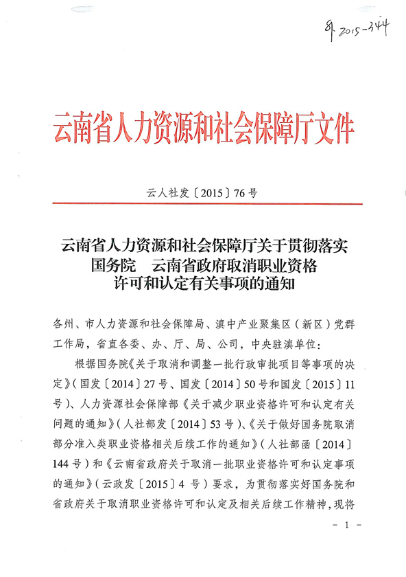 省人力資源和社會(huì)保障廳關(guān)于貫徹落實(shí)國務(wù)院云南省政府取消職業(yè)資格許可和認(rèn)定有關(guān)事項(xiàng)的通知